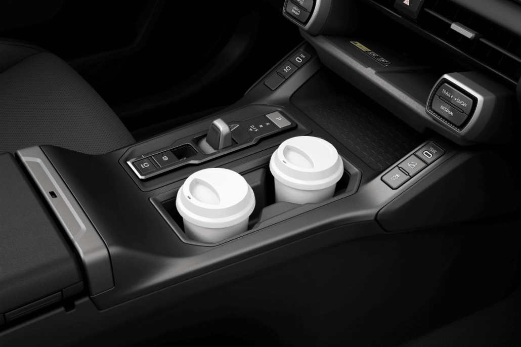 Naast de rijmodi NORMAL, ECO en SPORT kan de bestuurder handmatig de E-Four TRAIL-modus selecteren. In deze stand is de koppelverdeling vast ingesteld en worden aandrijf- en remkrachten geïntegreerd aangestuurd voor optimale tractie op losse of gladde ondergronden.